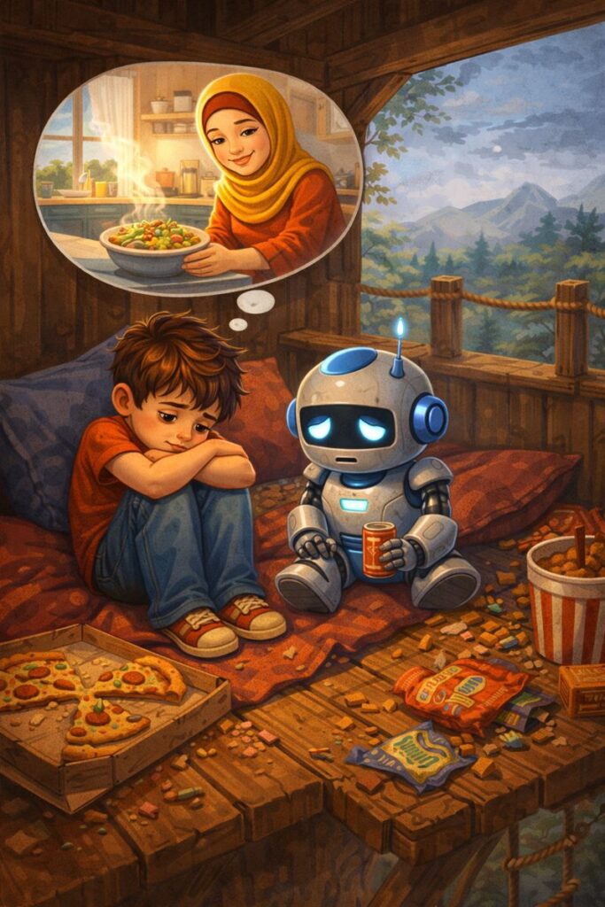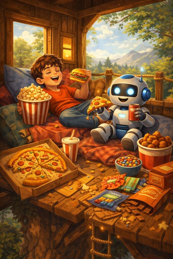 روبوٹ کے میجک کے ذریعے روز پیزا، برگر، آئس کریم اور چاکلیٹ آ جاتی۔